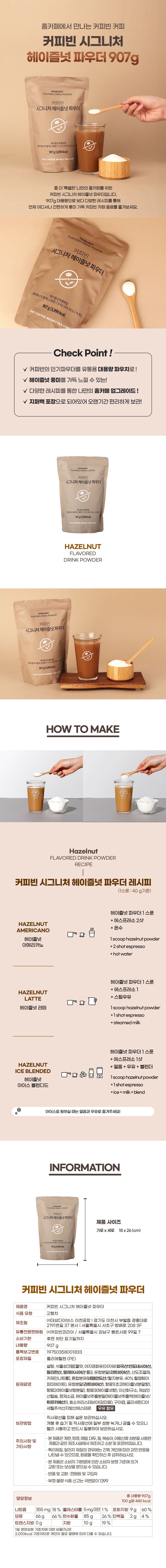 커피빈 시그니처 헤이즐넛 파우더 907g